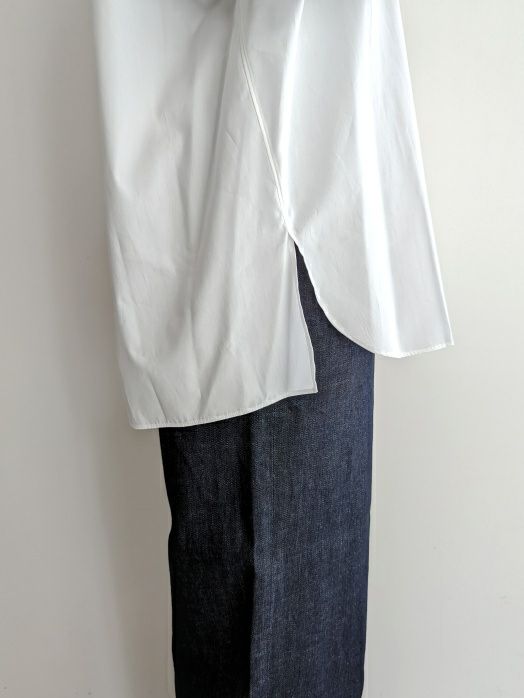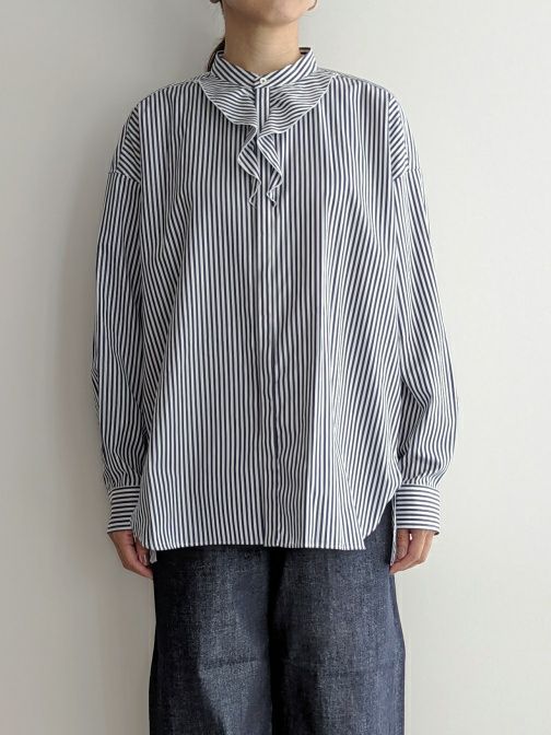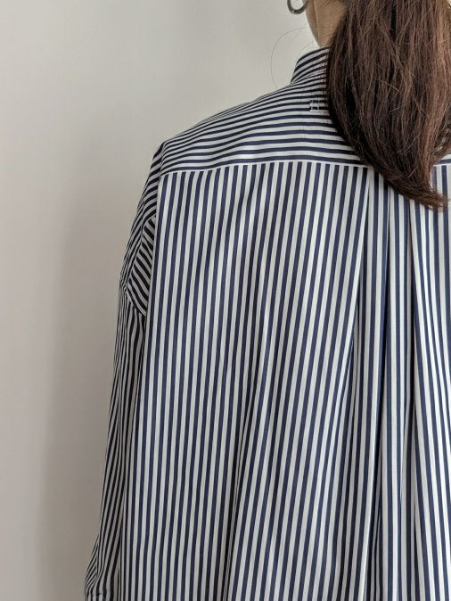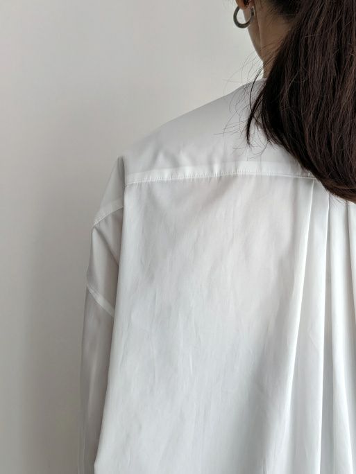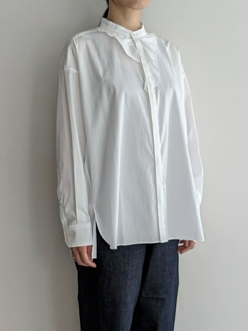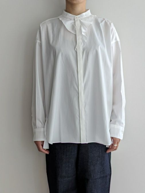 スタンダードに見えて首元のフリルなど、上品で細かなディテールが随所に光る一着です。程よいゆるさでリラックス感ある着用感も魅力です。