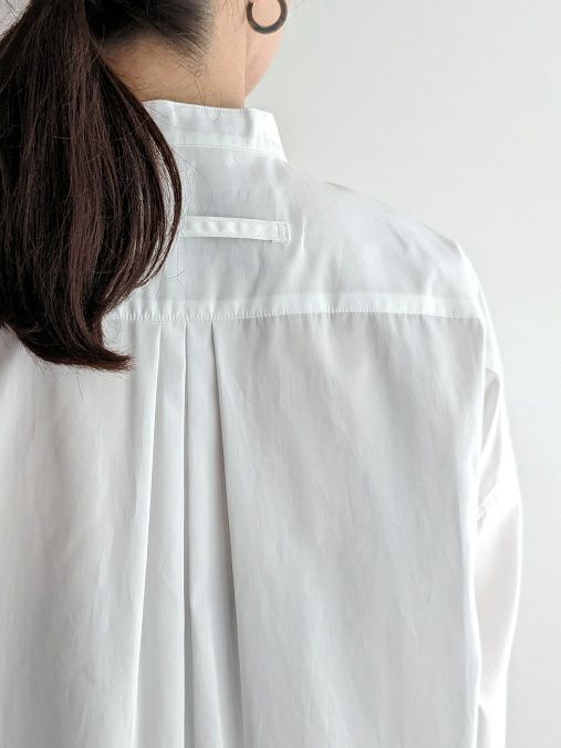 ヴィンテージのシャツのディテールを施したTICCAのノーカラーシャツ。