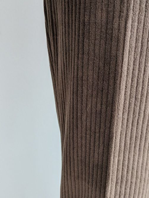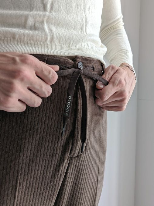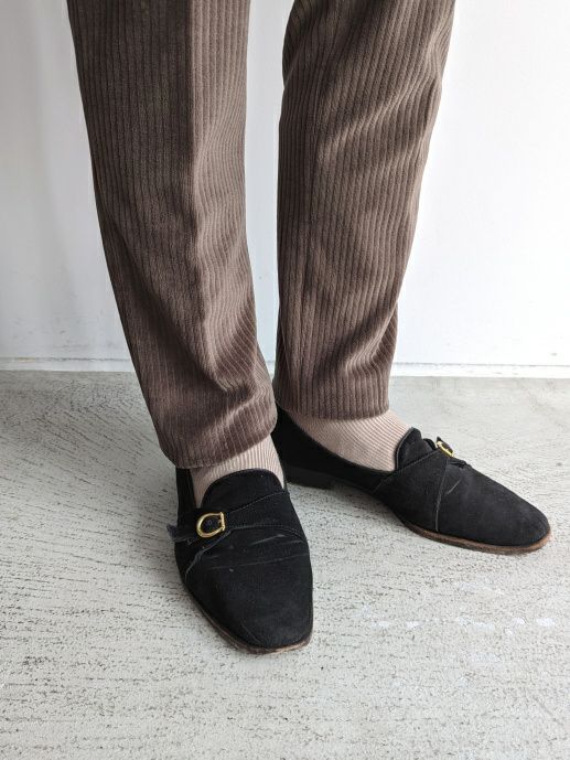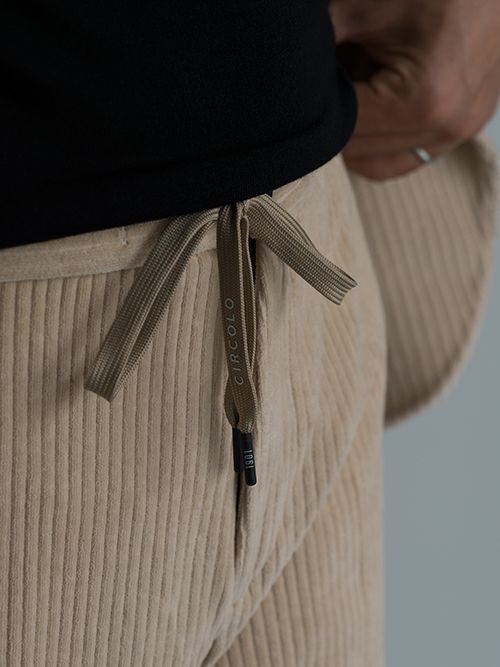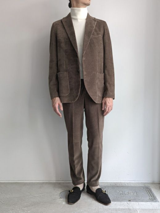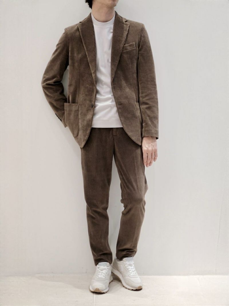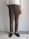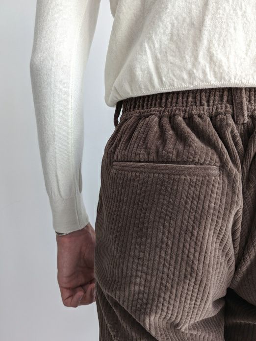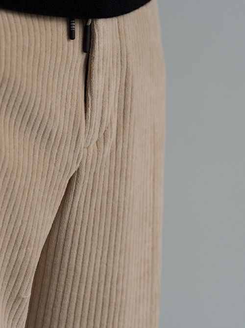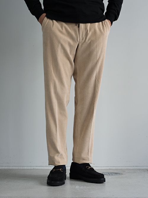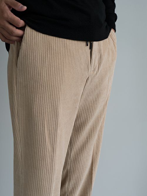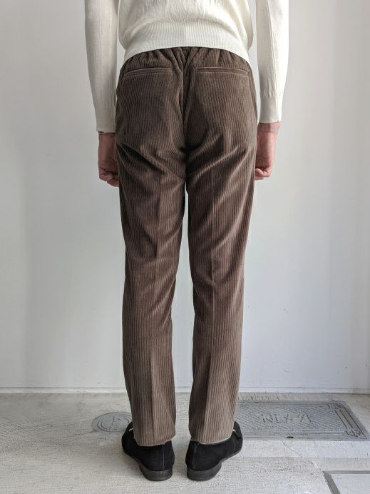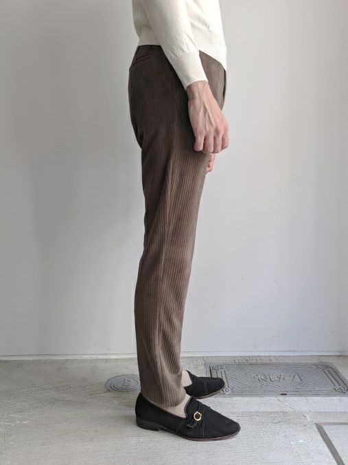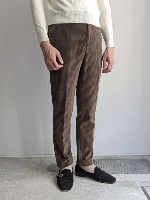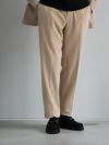 ノータックのすっきりとした腰回りで、膝下からはテーパードのかかるスマートなシルエットです。温かみのあるコーデュロイが秋冬のコーディネートを彩ります。