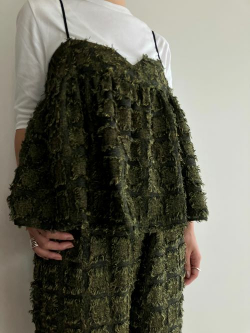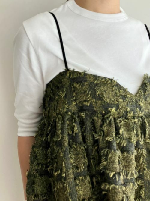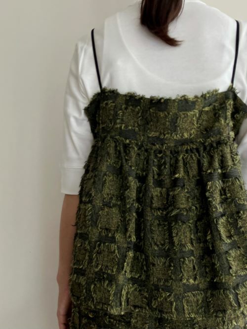 ポイントレイヤードや体型をカバーできるフリンジビスチェ。インナー次第でコーディネートのレパートリーが楽しめるレイヤードアイテム。胸元のハートカットがデコルテをキレイに魅せてくれます。