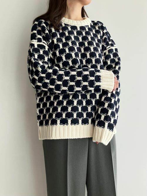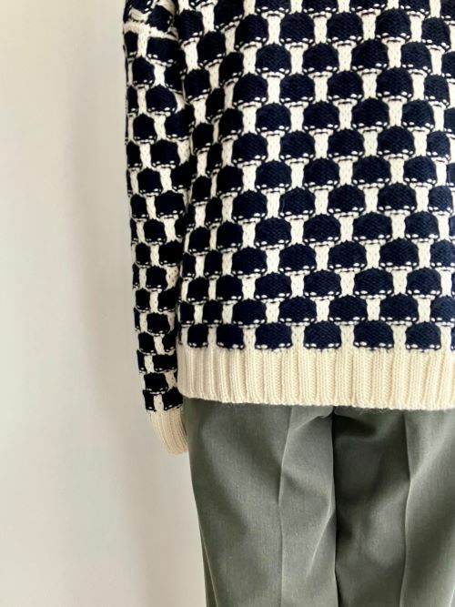オーガニックウールを使用した立体的な格子柄ニット。目の詰まった格子柄編みのボックスラインでインナーにシャツなどを重ねてカラーもの少し差しても楽しめます。トラッドな雰囲気もありトレンドに左右されないアイテムでありながら、キャッチーで主役になるニットです。
