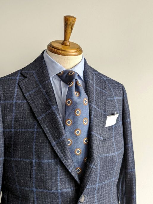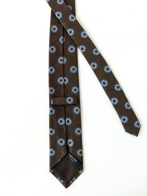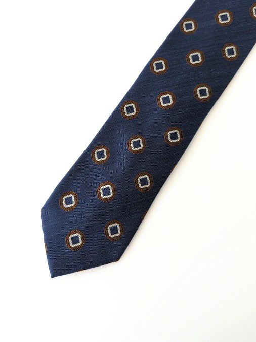 上質なシルク素材を使用した小紋柄ネクタイ。柄は大きすぎず、小さすぎずの絶妙なサイズ感で、Vゾーンに程よいアクセントと上品さを演出します。