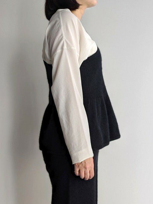 軽さと保温性に優れ、柔らかいタッチのチャイニーズラクーン混素材を使用。今季は定番のパンツに加え、重ね着スタイルに抜け感を演出するワンショルダーベストがリリースされました。季節の変わり目からコートのインナーまで長い期間使えるアイテムです。