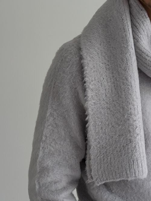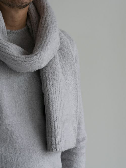 コットンブレンドのニットマフラー。テクスチャード加工を施す事で、ふっくらとした温かみのある仕上がりです。
