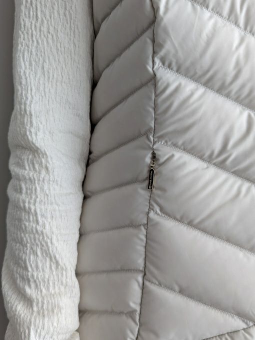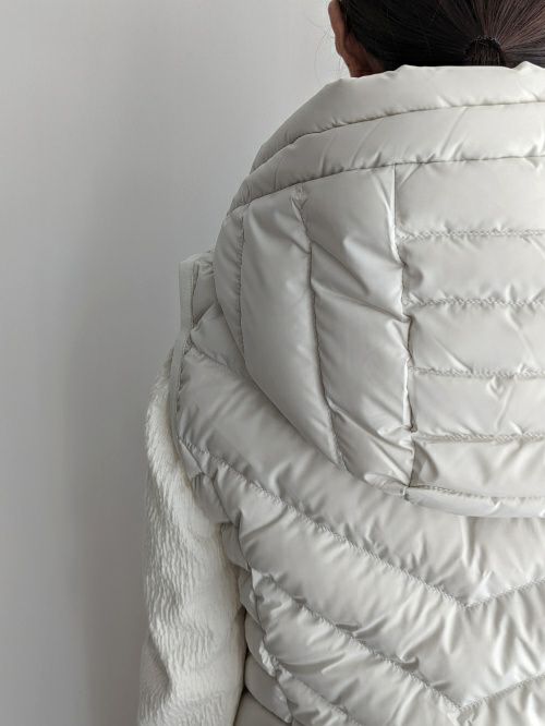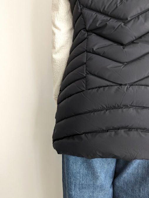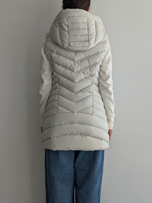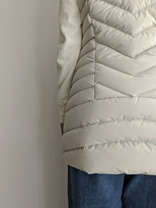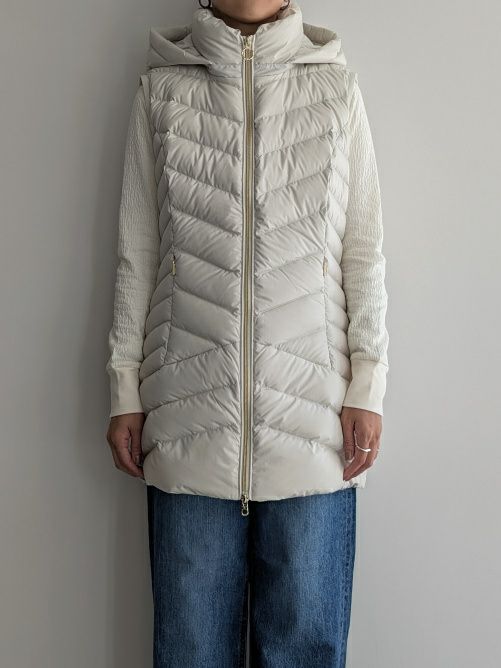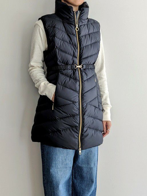 ウエスト部が緩やかにシェイプしている事で、すっきりとした見栄えの良いシルエット。中綿はダウン90%フェザー10%の黄金比率ですので、軽さと温かさが魅力的な一着です。