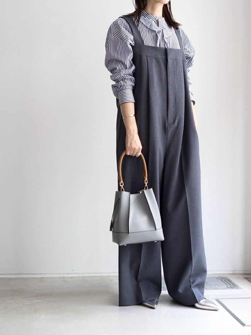 ドレープ感があり、上品な印象のサロペット。サラッとした軽い生地感でストレスフリーな着用感が魅力です。