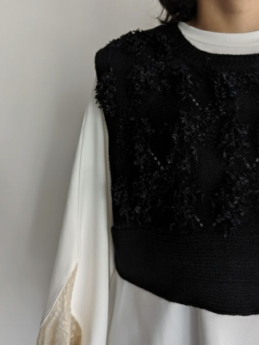 立体感のあるフリンジが目を惹くニットベストです。