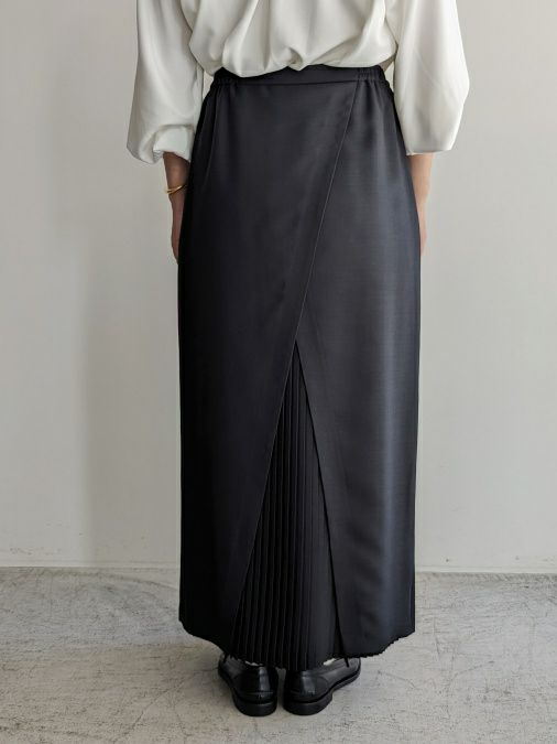 ハーフプリーツに同生地で重ねたラップが上品さが際立ちます。