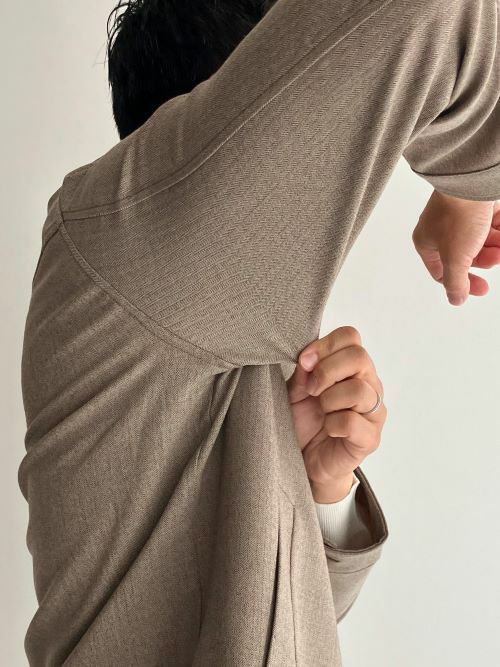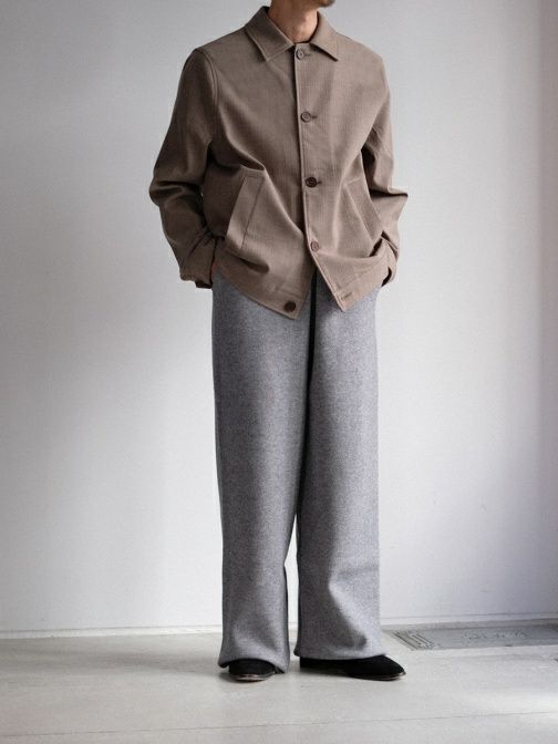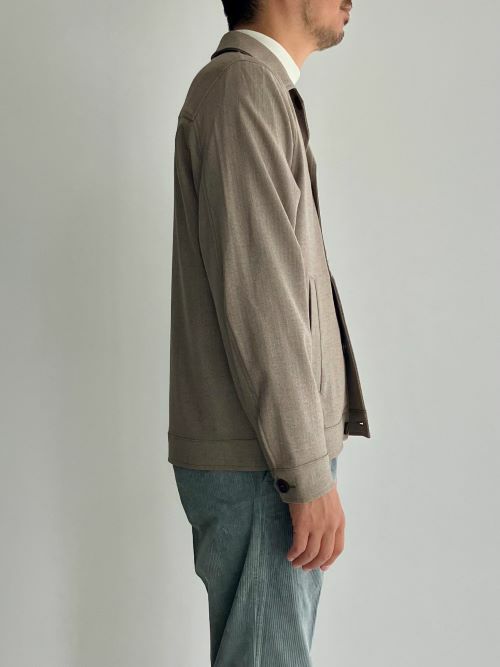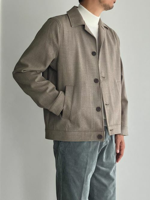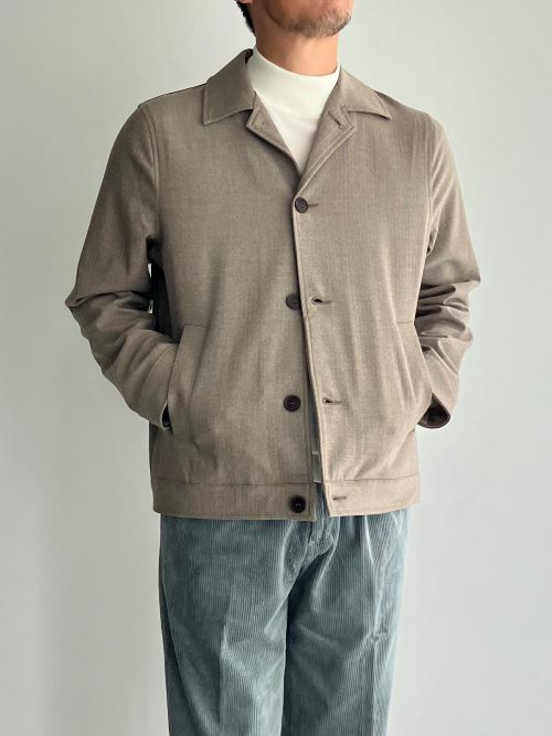 落ち着いたカラーリングが魅力的で、秋口の軽い羽織としては勿論、タートルニットとコーディネートした冬らしいスタイルまで叶います。オーバーコートのインナーとしてもお薦めです。