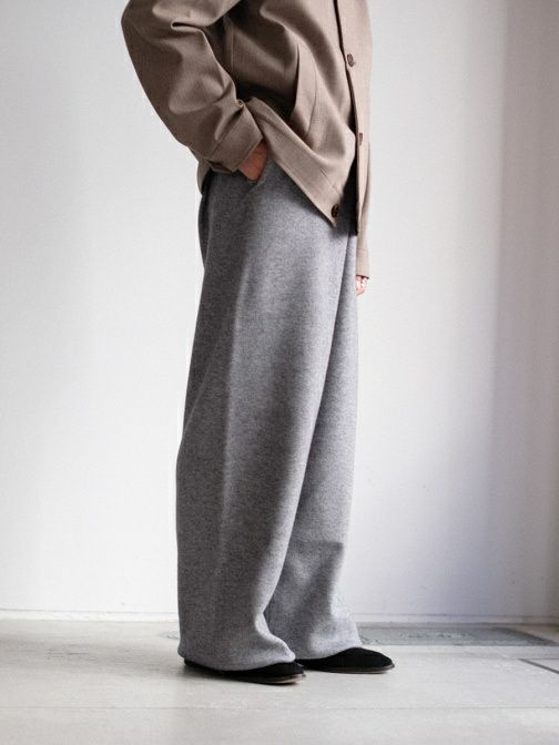 ワイドシルエットでリラックス感のあるイージーパンツ。股上が深いデザインでヒップにも余裕を持たせており、上品な落ち感が魅力的な一着です。