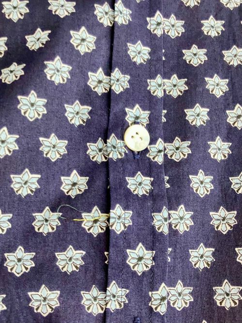 またボタンは独特な艶があり厚みのある白蝶貝ボタン(生地により茶蝶貝)を使用し、鳥足掛けのボタン付けで非常にエレガントな仕上がりになっております。