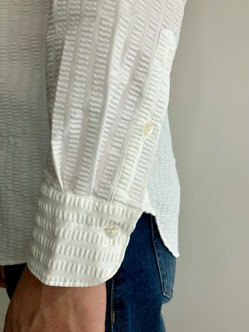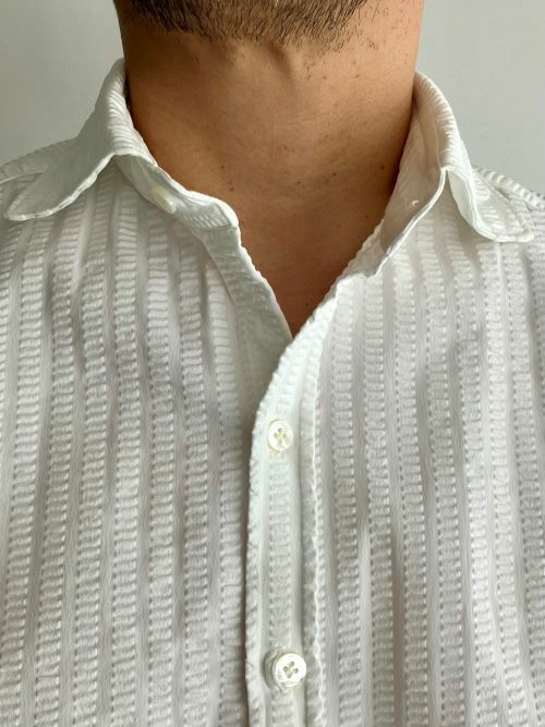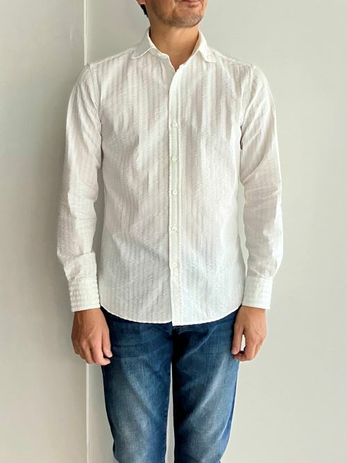 春夏シーズンに適したシアサッカー生地 カジュアルシャツ