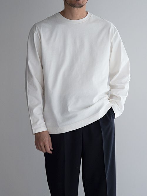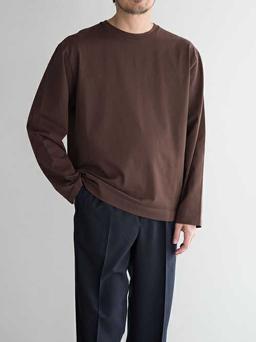 通年に渡り重宝するクルーネックのロングスリーブカットソー。上質なコットンを使用しており、高級感と落ち着いた大人のこなれを演出します。