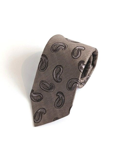 上質なリネンシルク素材を使用したペイズリー柄ネクタイ。キャッチーさと上品さを兼ね備えた良柄です。落ち着きのあるカラーリングも魅力的な一本。