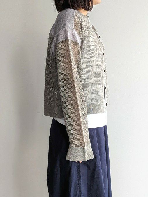 メッシュ編みニットカーデ
