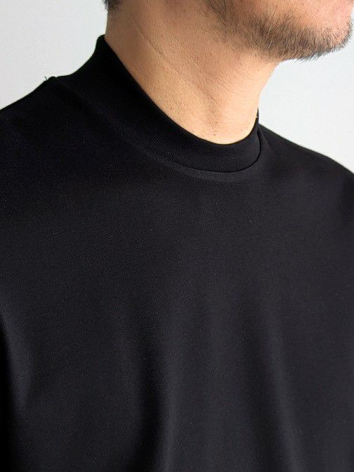 ジャケットのインナーに着用する事を前提に作成され、ネックが前に比べ後ろ側が高く設定されています。ジャケットを羽織ると、後ろからカットソーが見えるようになっており、見栄えだけでなく汚れ防止にもなる計算された作り。