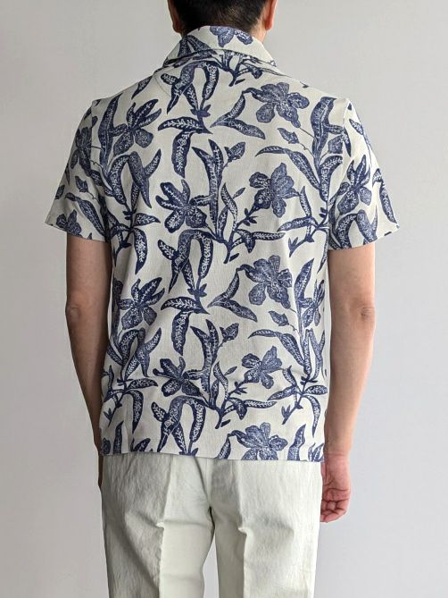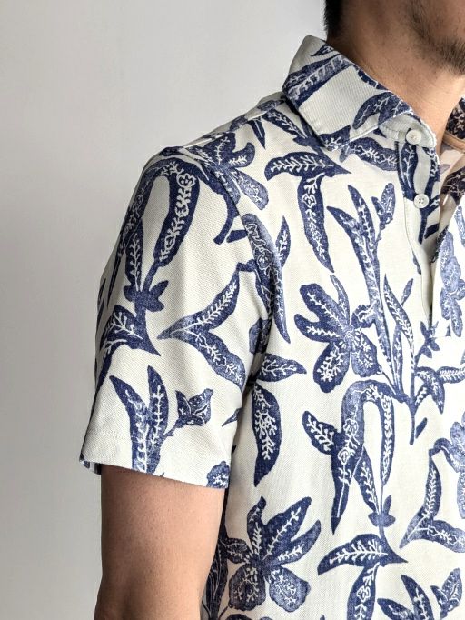 小ぶりの襟が雰囲気の良いカットソーポロ。ボディをキャンバスに描かれたボタニカル柄は、リゾート感だけでなく高いアート性も演出します。