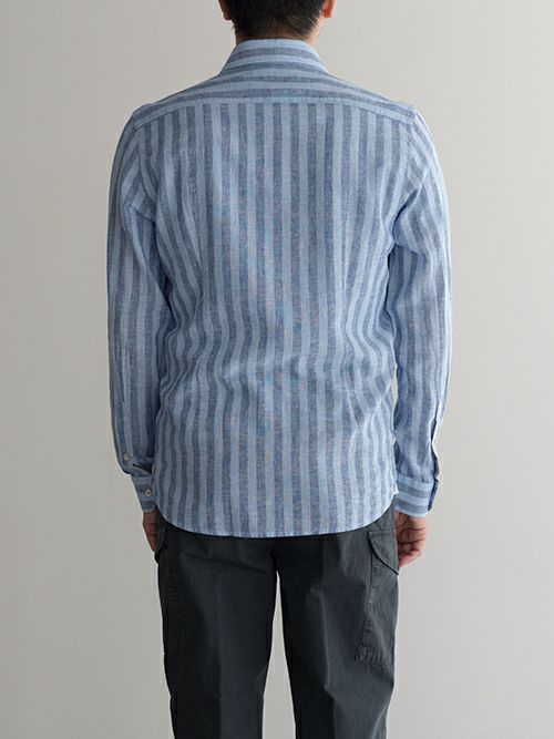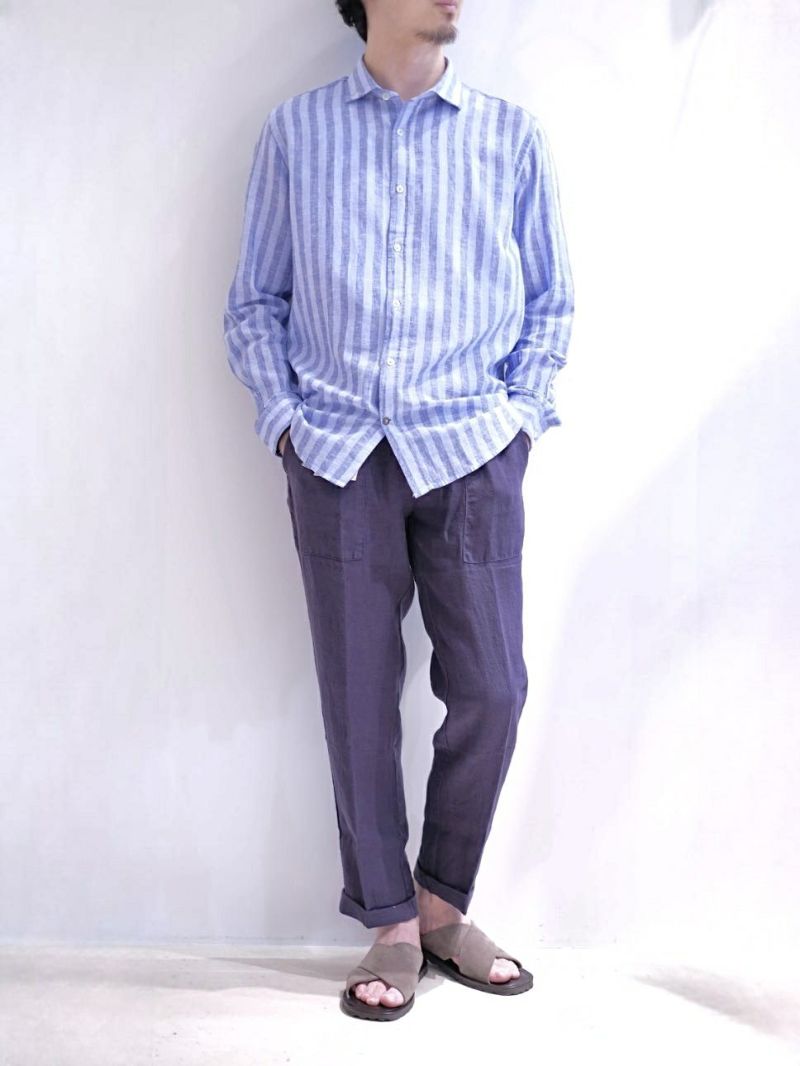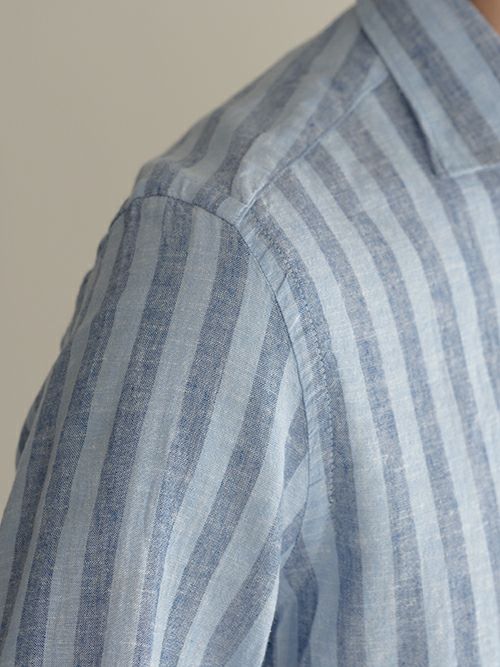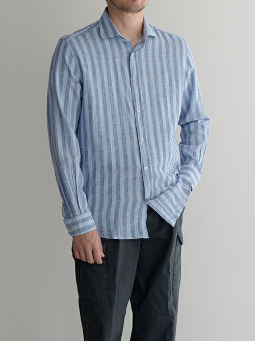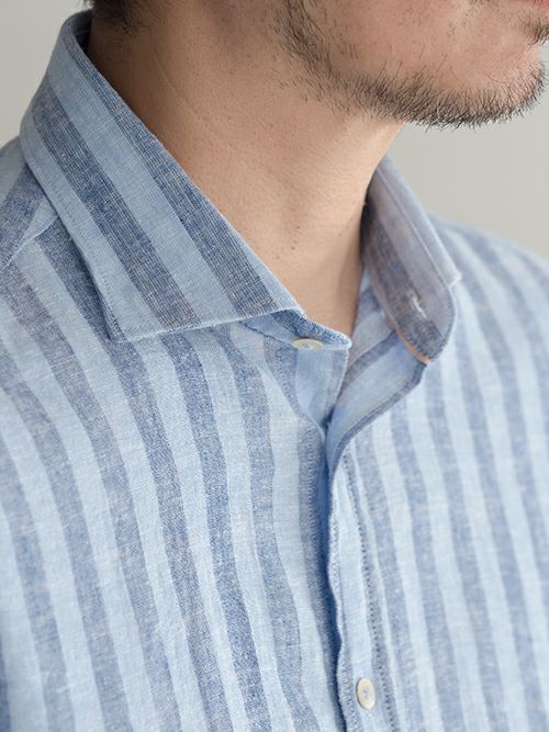 上質な綿麻素材を使用したストライプ柄シャツ。全体的に少しゆとりのあるシルエットで、リラックスした大人のカジュアルスタイルを楽しんでいただけます。