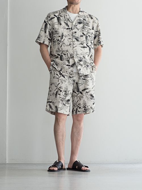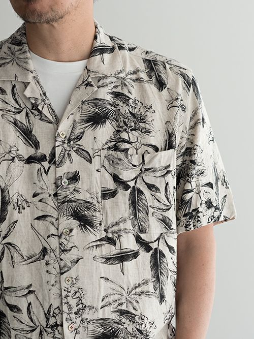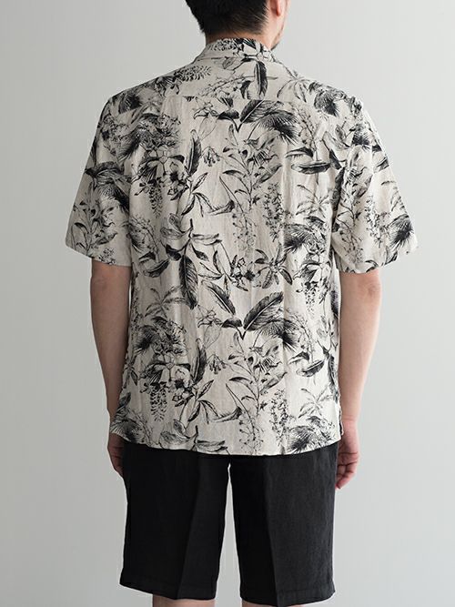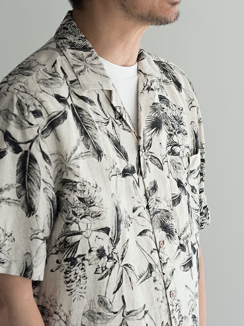 程よくゆとりのあるシルエットが特徴的なボタニカル柄オープンカラーシャツ。サイジングは今の雰囲気を取り入れながらも、ルーズに見えない大人のリラックスフィットです。