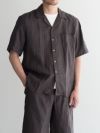 ドレスシャツ同様に後付けの袖、運針は24針、釦は11.5mmの茶蝶貝を使用。生地はリネンの平織り先染めで、薄すぎずに張りを感じていただける肌触りです。