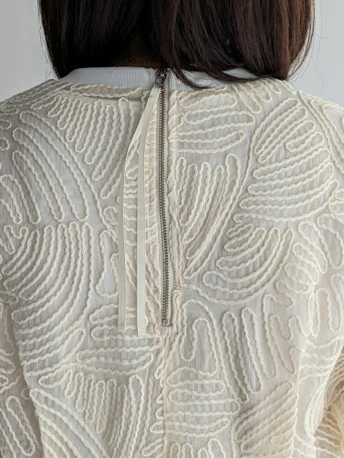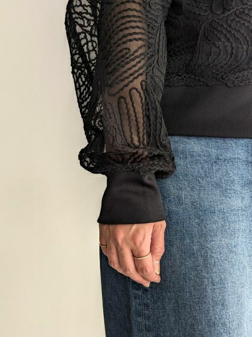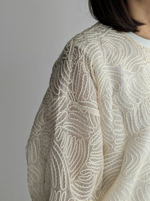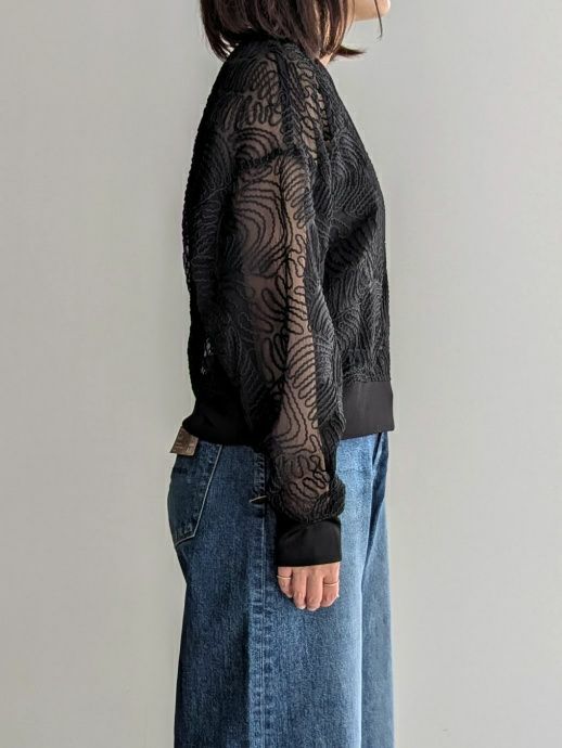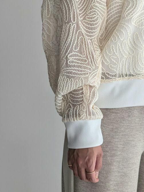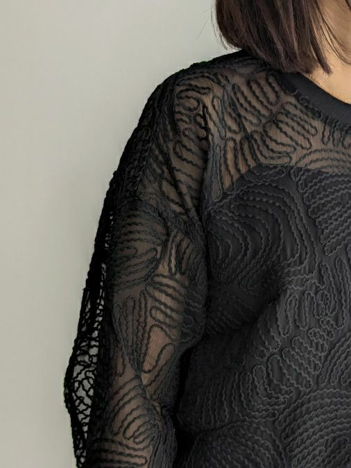 繊細な刺繍レースが目を惹く、上品でフェミニンなプルオーバー。軽やかな透け感がが程よい肌見せを叶え、女性らしいエレガンスを演出してくれます。リグ仕様の袖口は、腕まわりに程よくフィットし、快適な着心地に。カジュアルなデイリールックやキレイ目にスタイルにもマッチします。インナーとの重ね着や、アクセサリーのコーディーネートでさまざまな表情を楽しめる万能アイテムです。
