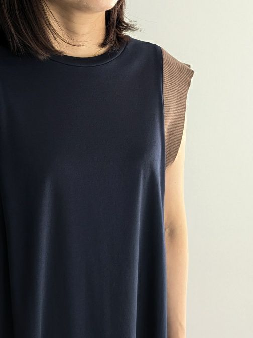 ニット×カットソーの使い合わせワンピースです。ニット部分は凹凸がわ
