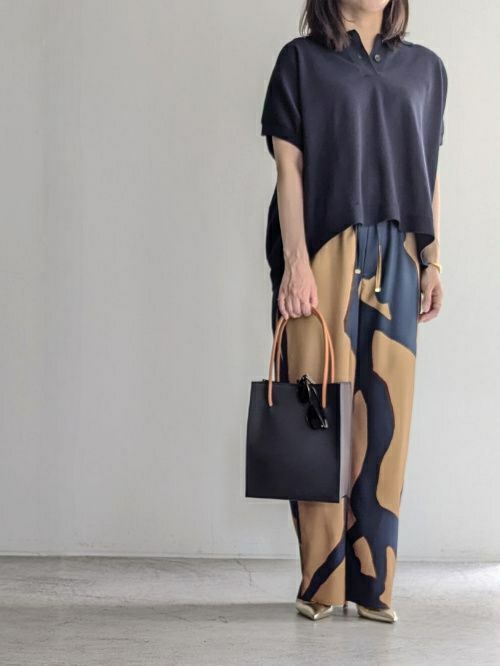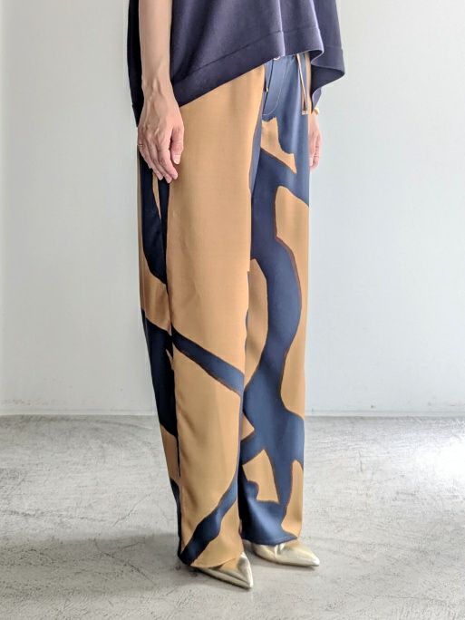 大胆なアート柄のパンツは、シンプルなカットソーやニットをモードなカラーで合わせてデイリースタイルに。また、サンダルやハットなどと組み合わせてリゾート風にも楽しめます。