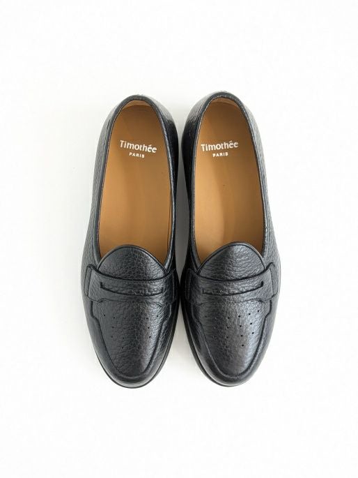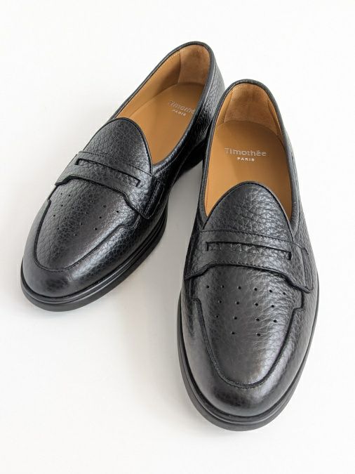 ソールまでオールブラックのカラーリングが印象的なコインローファー「TOUQUET(トゥケ)」。自然の美しさと洗練された魅力で知られる海岸沿いの都市、ル トゥケにちなんで名付けられました。