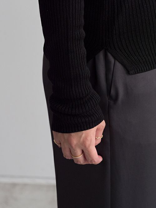 シンプルなリブデザインが魅力の一枚。ジャケットやサロペットのインナーとしてもすっきりと馴染み、素材特有のさらりとした肌触りで快適な着心地を叶えます。ウエストインしやすいシルエットで、スタイリングの幅が広がる万能アイテムです。
