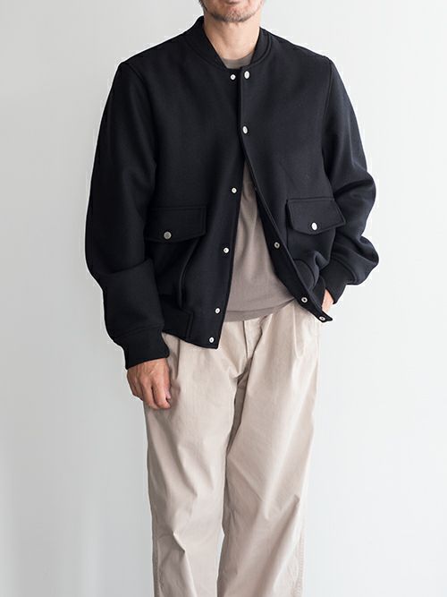 ゆとりのあるシルエットで、リラックス感のあるメルトン生地ブルゾン。計算された落ち感のあるパターンが特徴的な一着です。