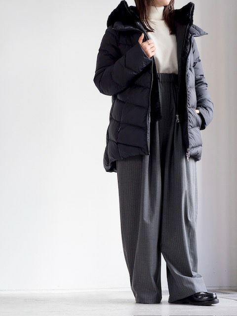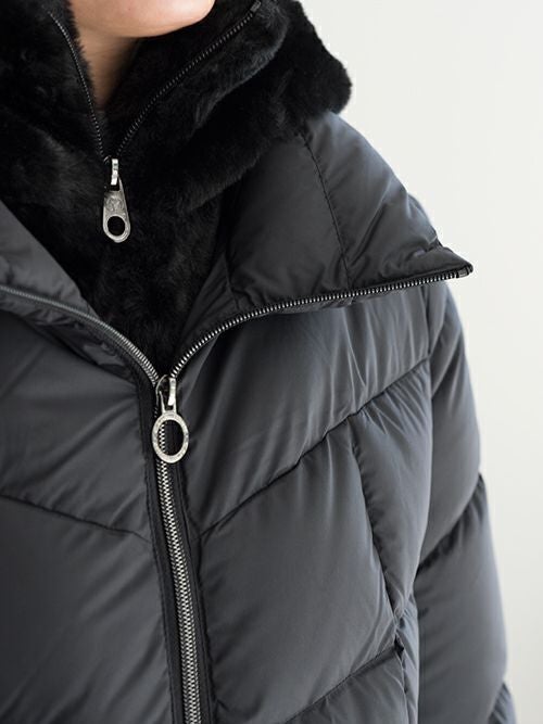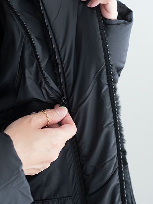脱着可能なエコファーとマットな生地感のコンビが魅力的なモデルALVAREZ。裾両サイドに配したファスナーを開ける事でシルエットに変化をつけられるので、多彩なスタイリングをお楽しみいただけます。