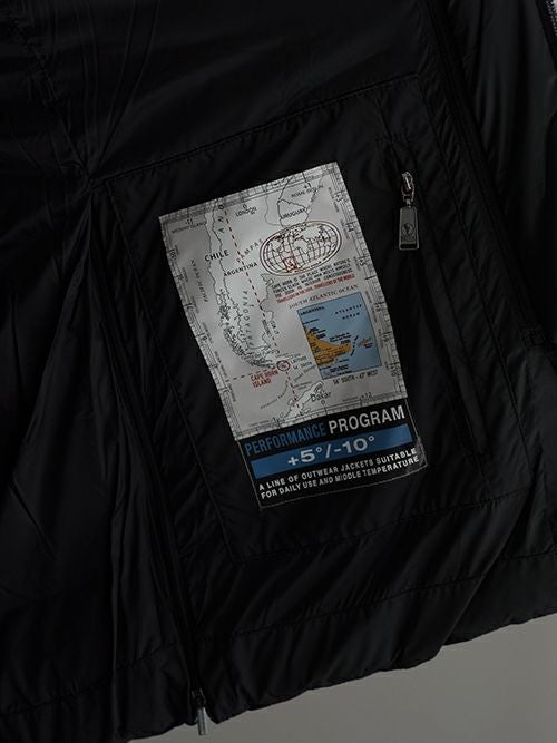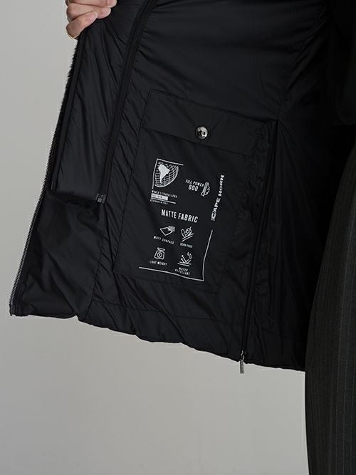 これまでのCAPE HORN主流のゴールドジップとは異なる表情としてガンメタルブラックジップを使うアクセント。漆黒のボディに調和するガンメタルブラックの質感は、光を抑えた落ち着きがあり、ダウン本来のシルエットや素材感を一層引き立てます。