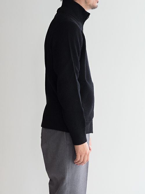 メリノウール100%のドライバーズニット。ダブルジップ仕様、サイドポケット完備、リブ編みによる立体感と伸縮性で、使い勝手が抜群の一着です。