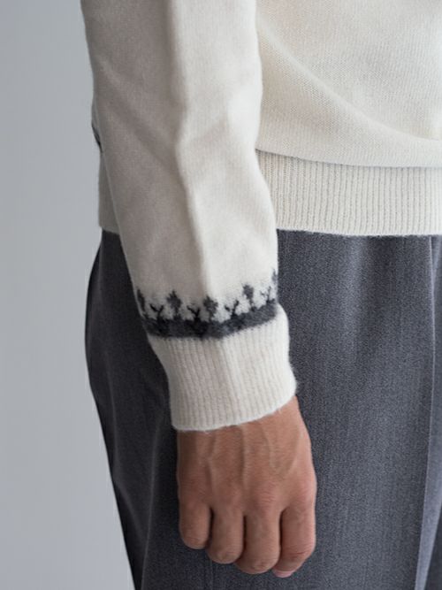 コーディネートのアクセントになる柄物ニットですので、シンプルなアウターやボトムスと合わせていただくと、上品にバランスの取れたスタイリングが叶います。