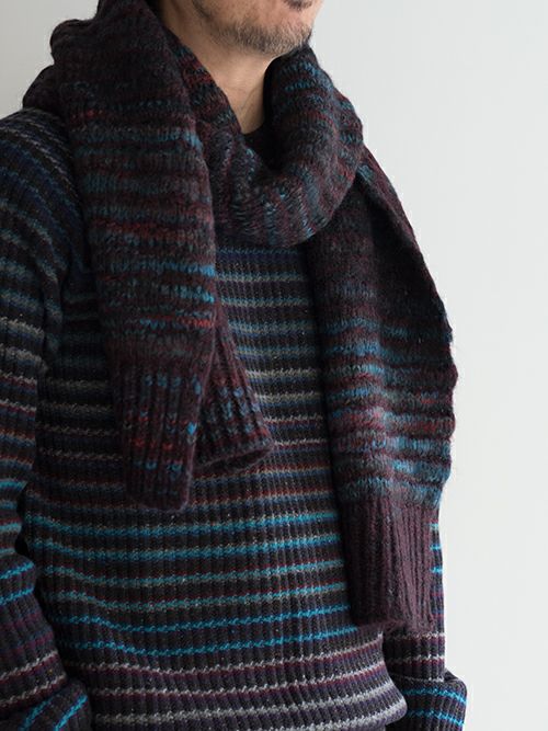 アルパカ、ウール、ナイロン混のニットマフラー。リバーシブル仕様で、コーディネートや気分に合わせた変化をお楽しみいただけます。