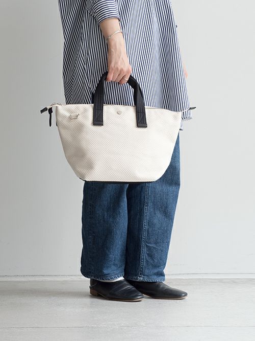 刺し子織の独特な素材感は、様々なスタイリングのアクセントに。それでいて馴染みやすく、飽きのこない魅力的なデザインです。ショルダーストラップは取り外し可能。