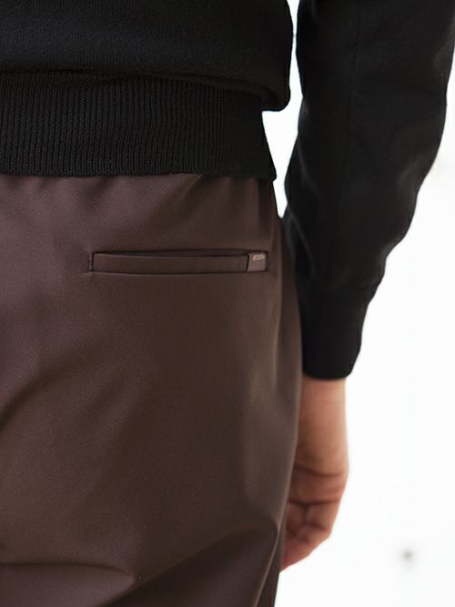 人気のドローコードモデルBERLINO、ブラウンカラーのナイロンストレッチ素材使用したスポーティーな一着。