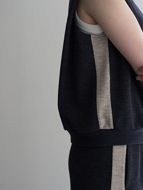 サイドに施されたラインデザインがさりげないアクセントに。コンパクトな丈感でバランスが取りやすく、同素材のパンツと合わせたセットアップスタイルも楽しめる大人のカジュアルアイテムです。