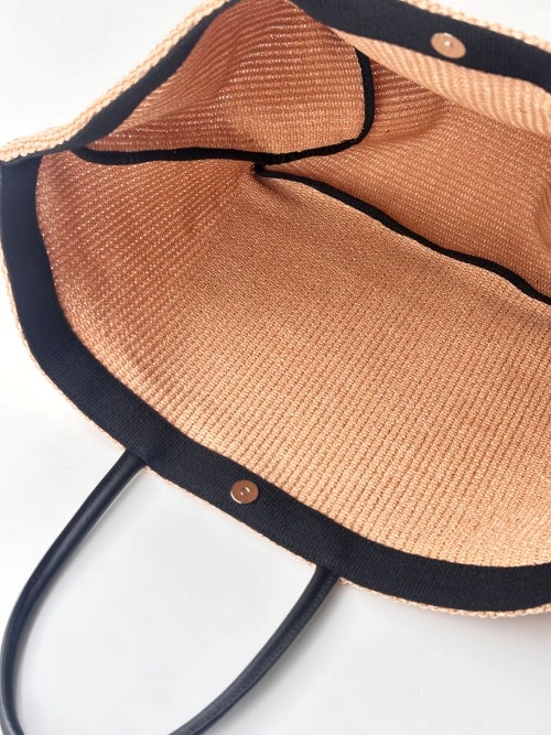 横長のフォルムで大き目サイズではありますが、素材はくったりと柔らかくや女性らしい雰囲気も出ます。持ち手やポケットなどのパーツもレザーを使用しているので、ワンピースなどのキレイ目からカジュアルな装いにも合わせやすく、スタイリングを選びません。