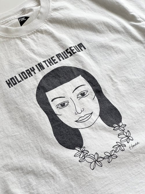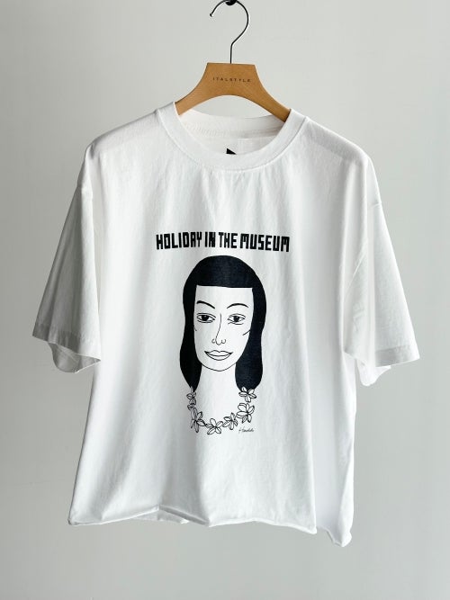 フロントにフラガールを思わせるフェイスイラストを配し、バックには「HOLIDAY IN THE MUSEUM」のロゴを大胆にあしらったデザインTシャツ。