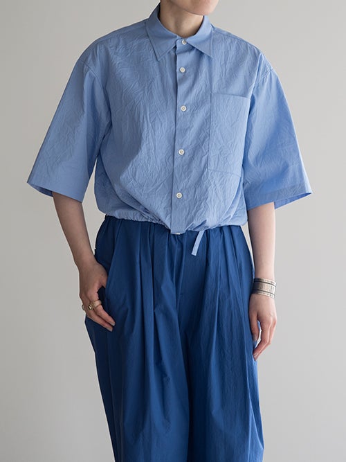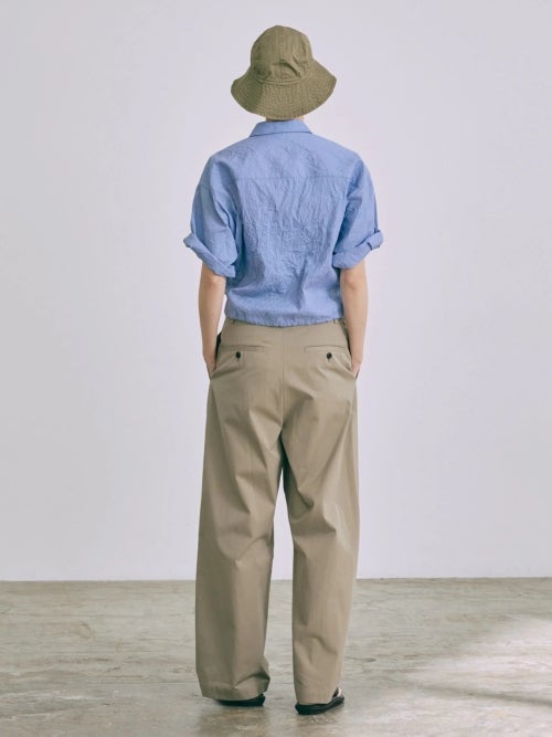 高密度に織り上げたコットン100%ブロード生地に特殊な洗い加工を施し、ナチュラルなワッシャー感を表現。軽やかでさらりとした肌触りが魅力で夏でも快適に着用いただけます。