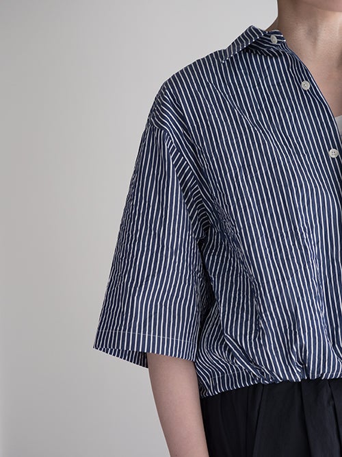ベーシックなシャツをショート丈にアレンジし、程よくゆとりのあるシルエットに仕上げることで大人のリラックス感を演出。裾のドローコードでシルエットの変化も楽しめシャツとしても羽織としても活躍する一着です。