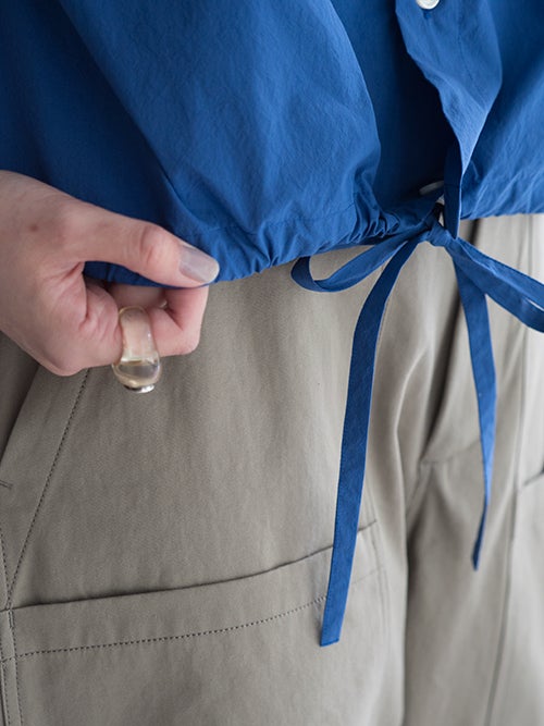 裾のドローコードでシルエットの変化も楽しめ、シャツとしてはもちろん軽い羽織としても活躍します。洗練されたホワイト・ネイビー・ブルーの3色展開。