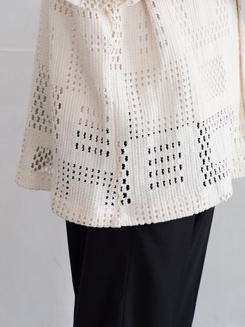ゆとりのあるシルエットで、リラクシーな雰囲気を纏ったニットオープンシャツ。計算された落ち感のあるパターンが魅力的です。