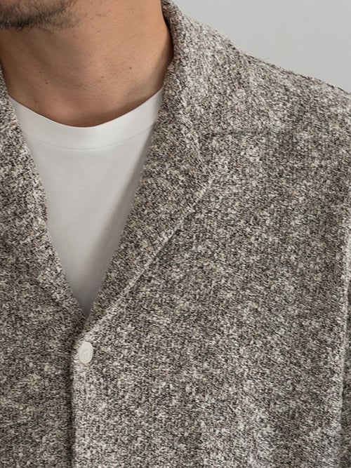 ゆとりのあるシルエットで、リラクシーな雰囲気を纏ったニットオープンシャツ。計算された落ち感のあるパターンが魅力的です。