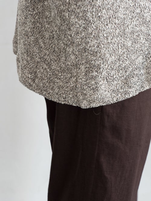 メランジュ調のグレーカラーのニットを使用した1着。