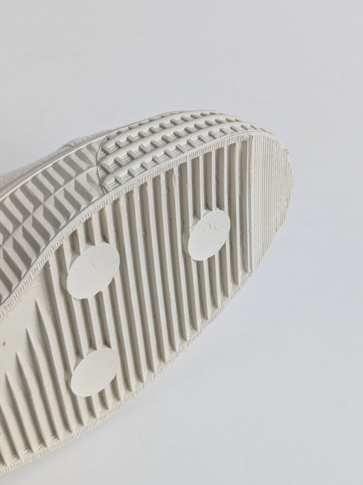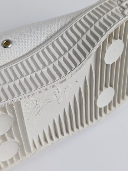 最大の特徴は、天然ゴムを高温で圧着する伝統の「バルカナイズ製法」。耐久性に優れ、しなやかな履き心地を実現しています。素朴ながらも洗練された佇まいは、大人のクリーンな装いに程よい抜け感を添えてくれる一足です。