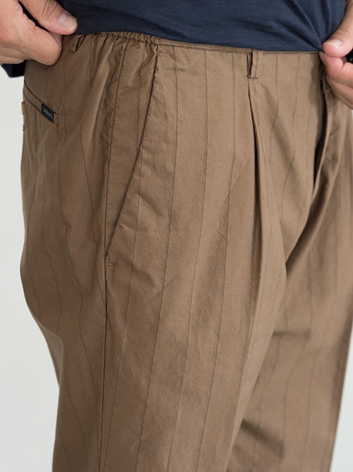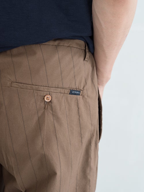 人気のドローコードモデルBERLINO、コットンストレッチのストライプ素材を使用した一着。