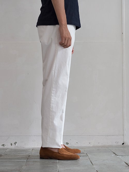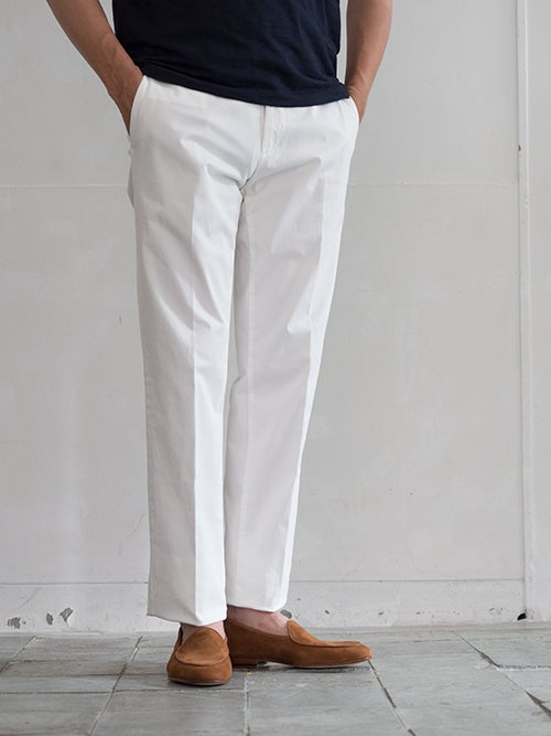 定番のテーパードモデルJACK、コットンストレッチ素材を使用したホワイトカラーの一着。