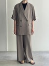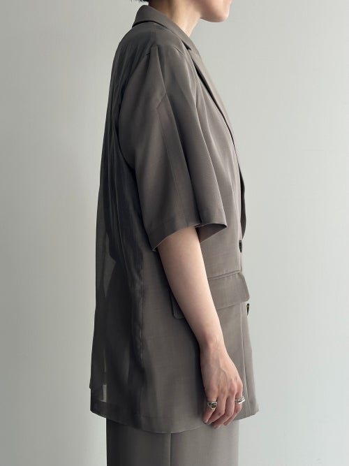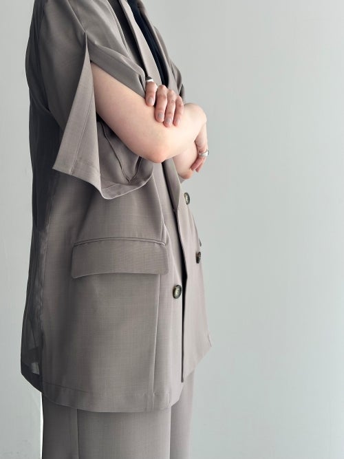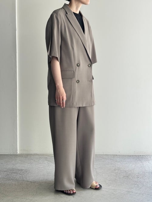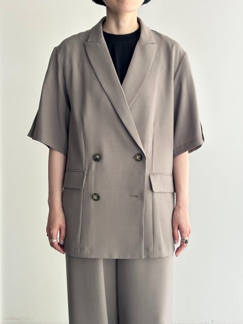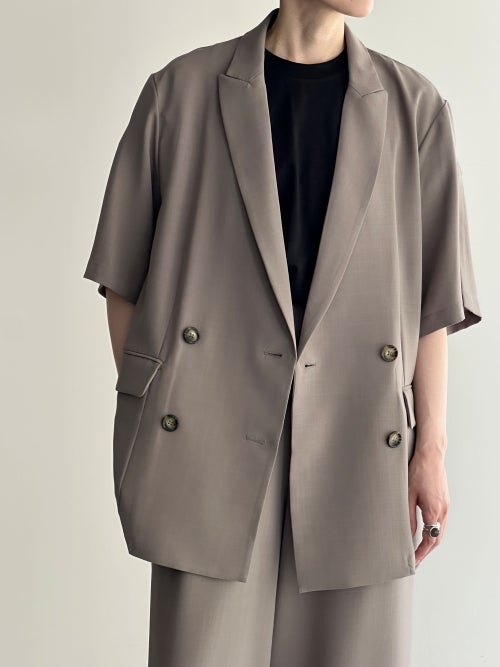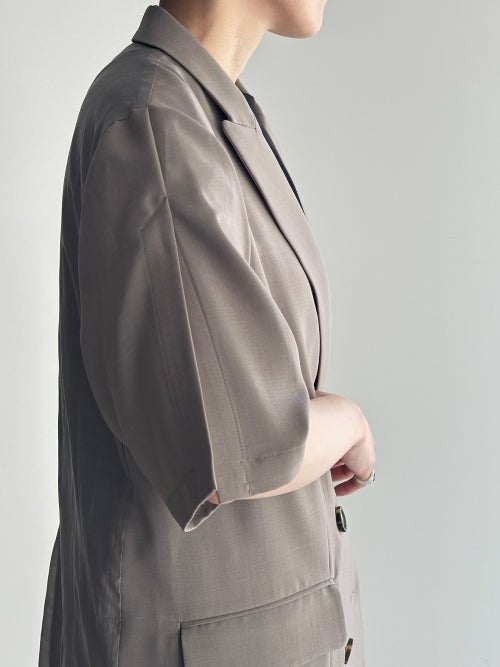 トラディショナルなダブルのデザインを、軽やかな半袖とゆとりのあるボックスシルエットで現代的にアップデートしました。肌離れの良いドライな質感と、優雅に揺れる落ち感が洗練されたムードを演出。シャツ感覚で羽織れる軽快さを持ちながら、大人の品格をしっかりとキープしてくれる夏の新定番アウターです。